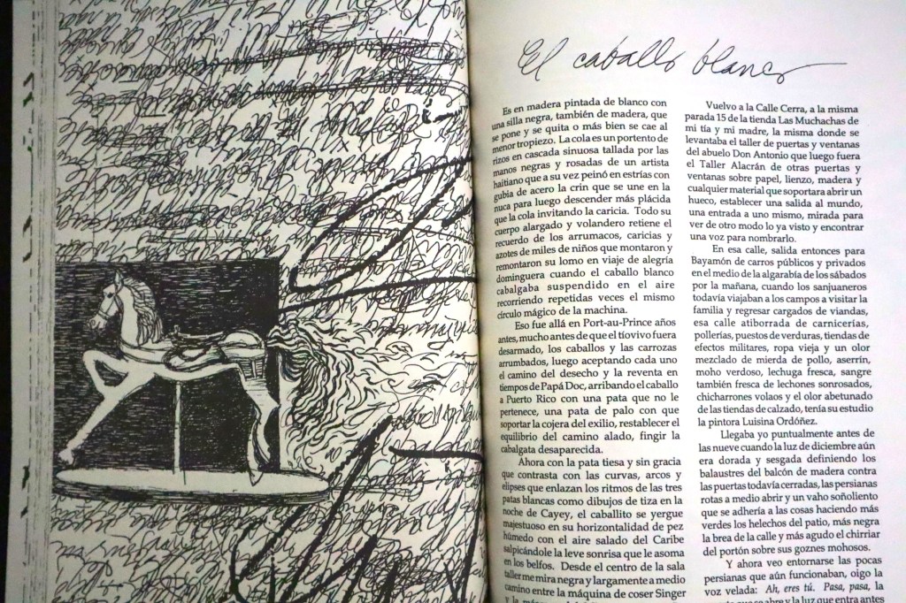 En un libro que es arte y verbo unificados, miramos lo que leemos y leemos lo que miramos sin que una lectura se imponga sobre la otra. La alusión de García Ramis a la infancia no es fortuita: los arabescos y laberintos intrincados que forman las líneas y tintas de este libro profusamente ilustrado nos acercan al recuerdo de aquellos garabatos infantiles ininteligibles con los que intentamos por primera vez expresarnos y que en manos del niño Martorell imaginamos garabato lúcido.