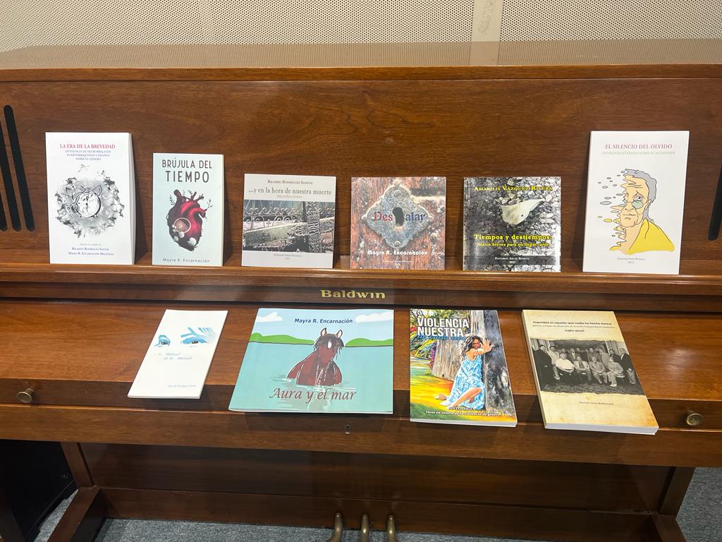 Llegaron con diez títulos en la mochila y los desplegaron sobre la mesa de transmisión, colocándolos según el orden en que los han publicado. Aparte de darle a la entrevista todo el aspecto de «feria» que le hemos querido imprimir a esta serie de manera simbólica, este despliegue nos permitió comprobar, en primer lugar, que el emprendimiento de Mayra Encarnación y Ricardo Rodríguez Santos con el sello Areté Boricua no es una de esas ocurrencias que nacen y mueren en un par de días y, lo más importante desde nuestra perspectiva, que entre un libro y otro se notan los aprendizajes desarrollados en poco tiempo.